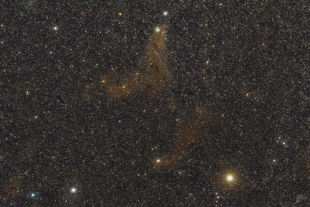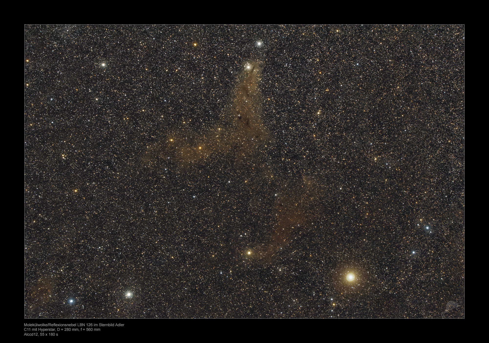 Sternes gamma Aql im Sternbild Adler. Die dunkleren Teile des Nebels wurden
