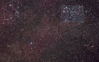 | Objektbeschreibung: Die Nova wurde nahezu zeitgleich vom australischen Amateurastronomen Paul Camilleri und dem All-Sky Automated Survey for Supernovae (ASAS-SN) am 12. April 2021 entdeckt. Die Helligkeit lag zum Zeitpunkt der Entdeckung bei der 9.5 Größenklasse und wurde in den nächsten Tagen etwas heller (8.5 Größenklasse) und danach schnell wieder lichtschwächer. Spektren deuten darauf hin, dass es sich bei V1710 Scorpii um eine klassische Nova handelt, das heißt, dass es sich um einen ersten aufgezeichneten Ausbruch handelt und dass die Nova zur Fe-II-Klasse gehört, in deren Spektrum auffällige Emissionslinien von ionisiertem Eisen zu finden sind. Eine Nova entsteht, wenn ein Weißer Zwergstern Wasserstoffgas aufgrund seiner starken Gravitation von einem eng um ihn kreisenden Begleitstern abzieht. Das Material strömt spiralförmig zur Oberfläche des weißen Zwergs ab und sammelt sich dort an. Wenn diese Schicht eine Dicke von etwa 200 Metern erreicht, verdichtet und erhitzt die starke Schwerkraft des Sterns den Wasserstoff, bis er in einer thermonuklearen Kettenreaktion explosionsartig verschmilzt. Bei einer Nova kann ein ansonsten lichtschwaches Sternsystem über Nacht um bis zu 15 Größenklassen aufleuchten. Nova Explosionen sind zwar katastrophal, lassen aber das Doppelsternsystem intakt, so dass der Weiße Zwerg nach dem Abklingen des Ausbruchs wieder seine weitere Entwicklung fortsetzen kann. Wiederholt sich im Laufe von vielen Jahren oder Jahrhunderten - wie zum Beispiel beim System RS Ophiuchus - solch ein Ausbruch, so spricht man von einer wiederkehrenden Nova. Die Position der Nova lag in einer interessanten Region im Skorpion zwischen dem Bugnebel (NGC 6302) und dem offenen Sternhaufen NGC 6281, eingebettet in H-II Emissionsnebeln. Deshalb haben wir im Juli 2021 eine Aufnahme der Himmelsregion aufgenommen. Interessanterweise ist das Sternsystem noch sichtbar, wenn auch die Helligkeit nun deutlich der 15. Größenklasse liegt. |