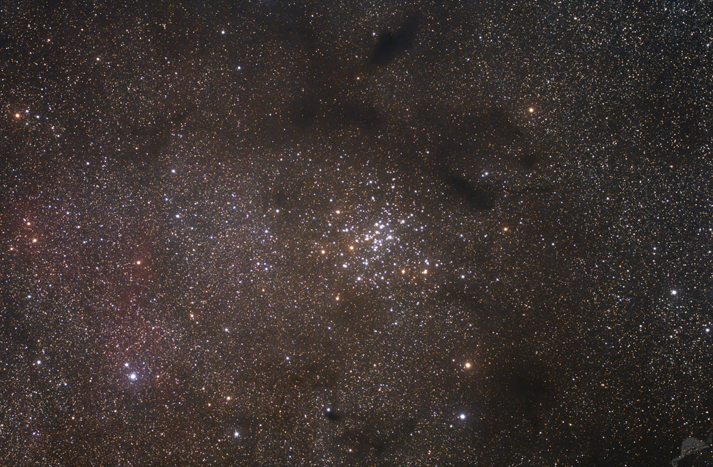 | Objektbeschreibung: NGC 6124 ist ein Offener Sternhaufen im Sternbild Skorpion. Bei einem scheinbaren Durchmesser von 40 Bogenminuten wird er nach Trumpler als Typ II 3 m katalogisiert. NGC 6124 beinhaltet etwa 100 Sterne und steht in einer Entfernung von ungefähr 1700 Lichtjahre zum Sonnensystem. Der Sternhaufen wurde 1751 von Nicolas Louis de Lacaille entdeckt. |