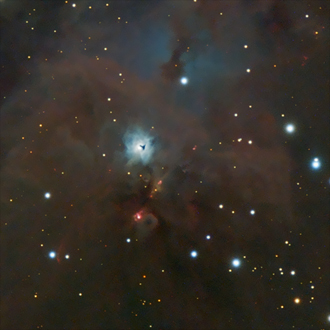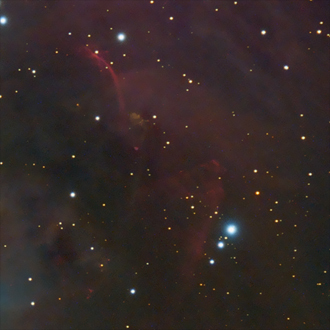 NGC 1999 and Herbig Haro objects in the constellation Orion Image data 27.03 + 02.04.2022 24 x 600, ZWO ASI 071 MC Pro Telescope: Astro Physics 130 mm EDFS with field flattener at f = 850 mm Location: Chamäleon Observatory, Onjala Lodge, Namibia Image processing: DeepSkyStacker, Pixinsight and Photoshop |