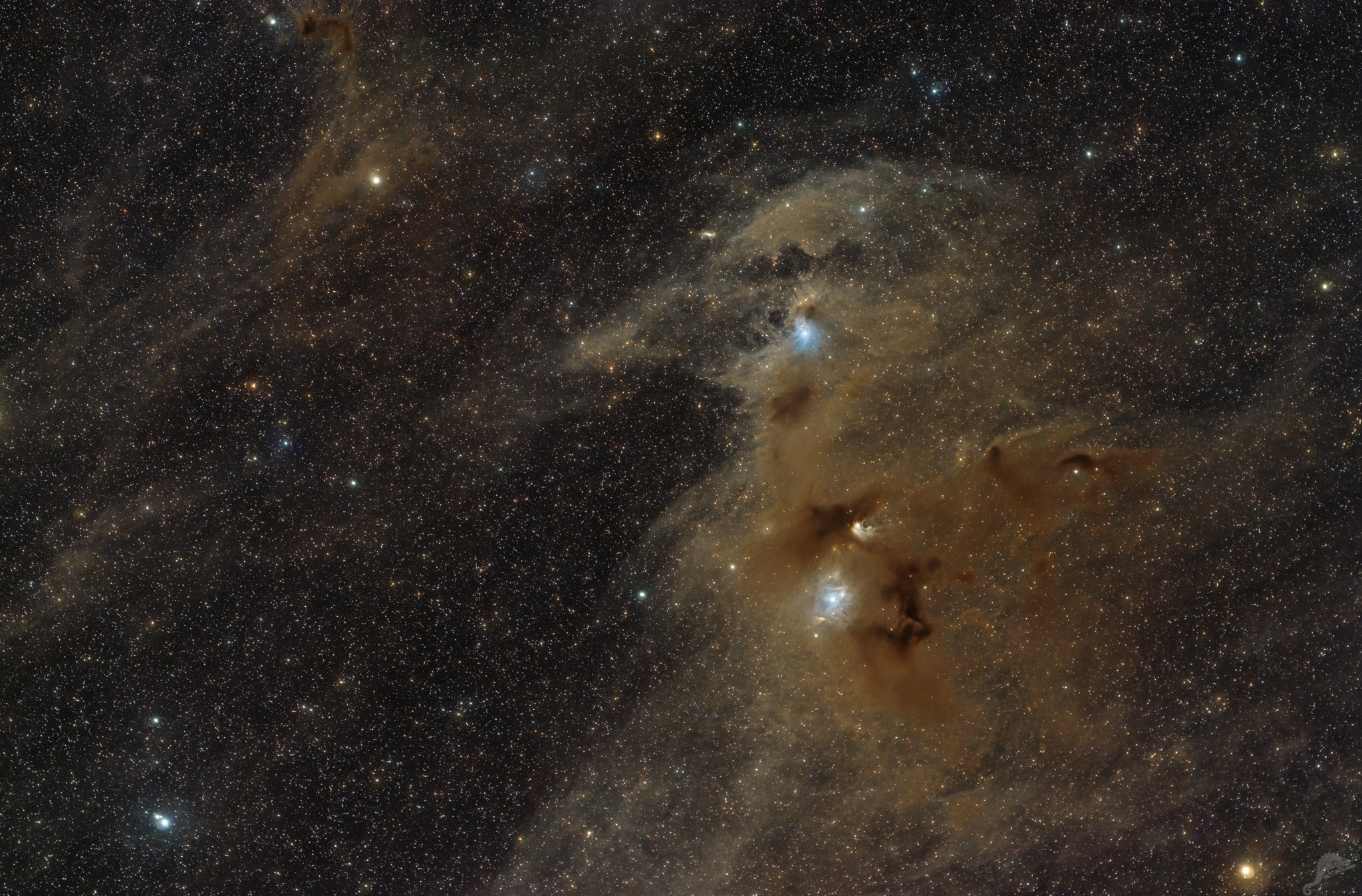 IC 2631 and molecular clouds in the constellation Chamäleon Image data 27.+29.04.2022 64 x 600 s, ZWO ASI 071 MC Pro Telescope: Williams Optic RedCat 51 - f = 250mm Location: Chamäleon Observatory, Onjala Lodge, Namibia Image processing: Nebulosity, Registar, Regim, Photoshop |
