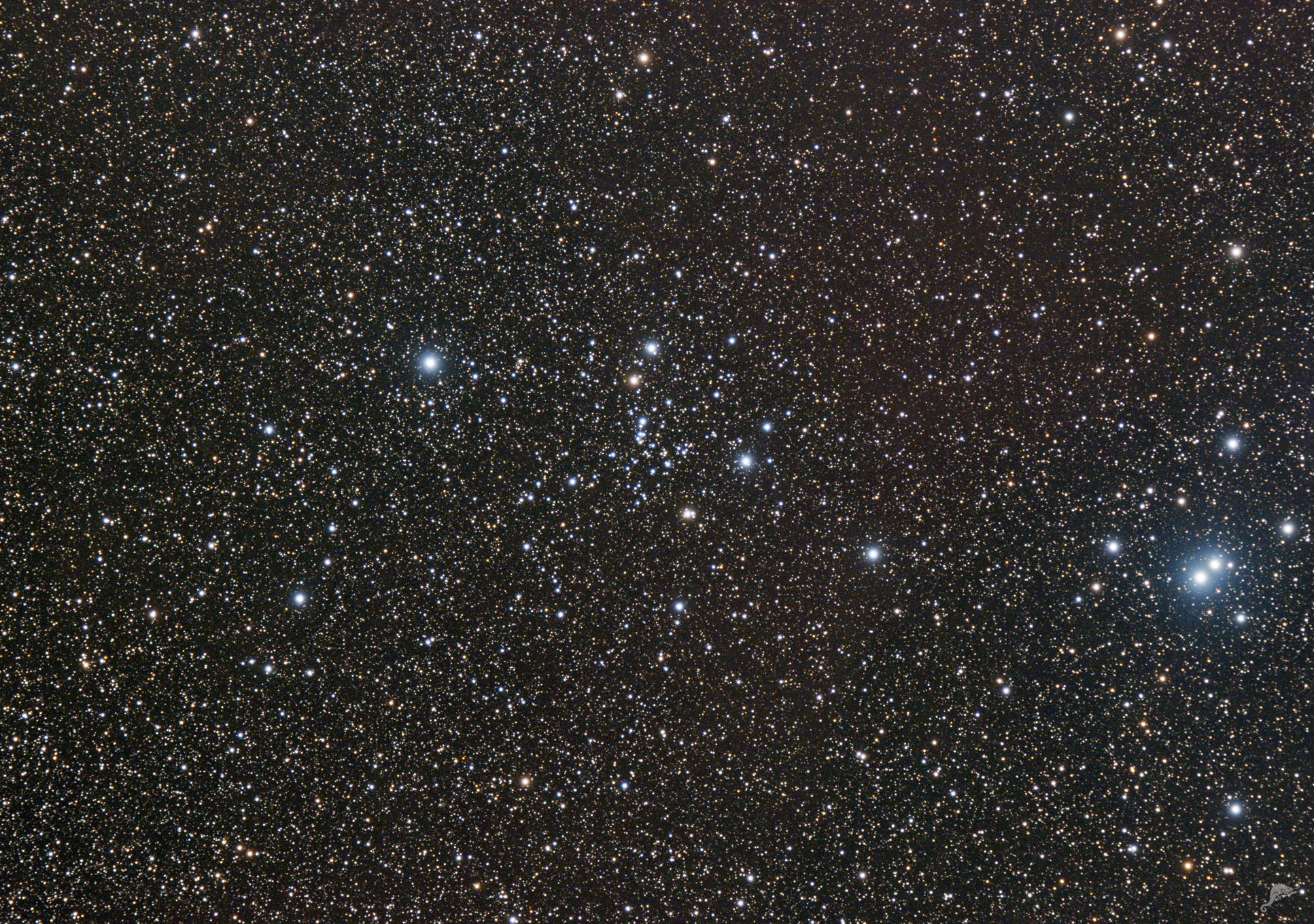| NGC 2669 - open star cluster in constellation Vela Image data 08.05.2022 - 12 x 3600 s, ZWO ASI 071 Pro - Color (cooled) Telescope: Pentax SDP 105 mm at f = 670 mm Location: Chamäleon Observatory, Onjala Lodge, Namibia Image acquisition and processing: DeepSkyStacker, PixInsight + Photoshop |