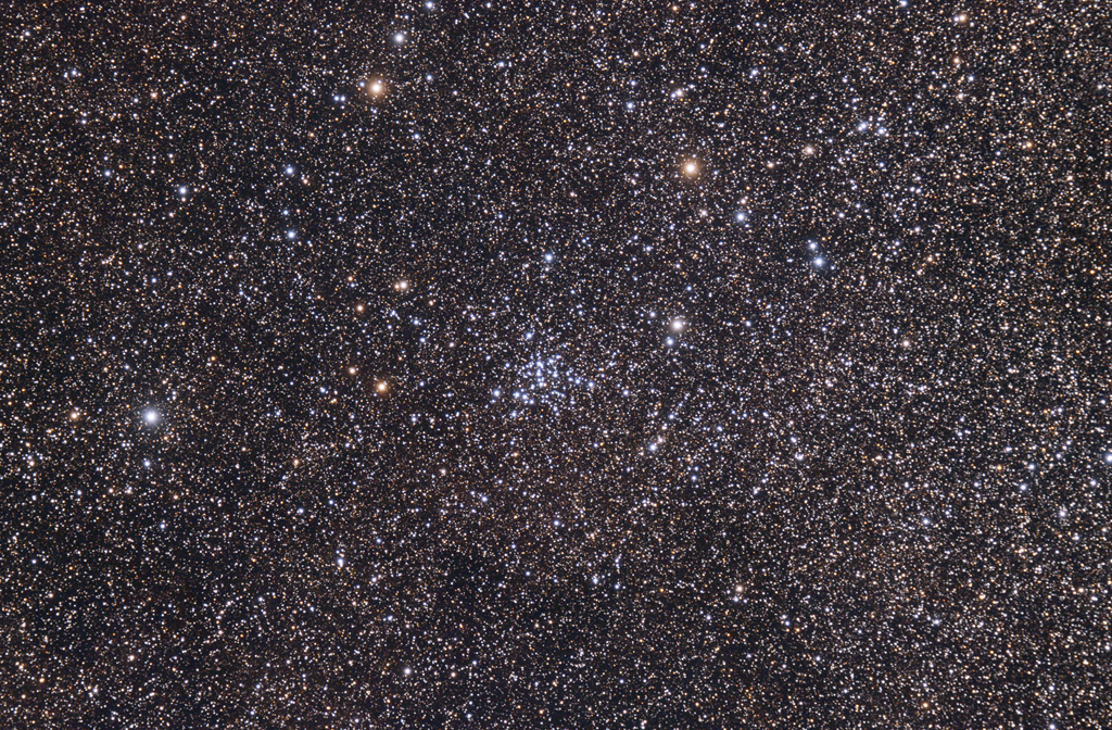 | NGC 4103 - Open star cluster in the constellation Southern Cross Image data 08.05.2022 - 30 x 180 s, ZWO ASI 071 Pro - Color (cooled), Moonlight Telescope: Astro Physics 130mm EDFS + Flattener at f = 850mm Location: Chamäleon Observatory, Onjala Lodge, Namibia Image acquisition and processing: DeepSkyStacker, PixInsight + Photoshop |