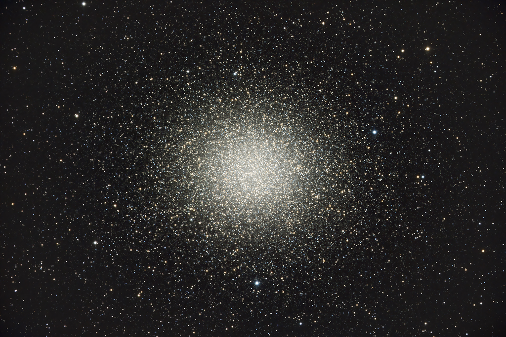 | Objektbeschreibung: Der Kernbereich von Omega Centauri - Unser Bild zeigt den Kernbereich des größten Kugelsternhaufen unserer Galaxie im Sternbild Centaurus. Das Bild besteht aus 30 - mit nur 60 Sekunden Belichtungszeit - Einzelbilder. Er enthält etwa 10 Millionen Sterne, wird nach Shapley der Konzentrationsklasse VIII zugeordnet und ist etwa 17.300 Lichtjahre zum Sonnensystem entfernt. Aus der Entfernung und seiner scheinbaren Größe am Himmel ergibt sich ein wahrer Durchmesser von ungefähr 150 Lichtjahre. Entdeckt wurde NGC 5139 im Jahr 1677 von Edmond Halley. Aktuelle Forschungen mit dem Hubble-Weltraumteleskop, der Gaia-Raumsonde und dem Gemini-Observatorium lassen auch die Vermutung zu, dass es sich nicht um einen Kugelsternhaufen, sondern möglicherweise um den Kern einer Zwerggalaxie handelt, deren äußeren Sterne mittlerweile von der Milchstraße aufgenommen wurden. Object description The core region of Omega Centauri - Our image shows the core area of the largest globular cluster of our galaxy in the constellation Centaurus. The image consists of 30 - with only 60 seconds exposure time - single images. It contains about 10 million stars, is assigned to class VIII according to Shapley and is about 17,300 light years away from the solar system. From the distance and its apparent size on the sky it has a true diameter of about 150 light-years. NGC 5139 was discovered by Edmond Halley in 1677. Recent research with the Hubble Space Telescope, the Gaia spacecraft, and the Gemini Observatory also suggests that it is not a globular cluster, but possibly the core of a dwarf galaxy whose outer stars have since been absorbed by the Milky Way. |