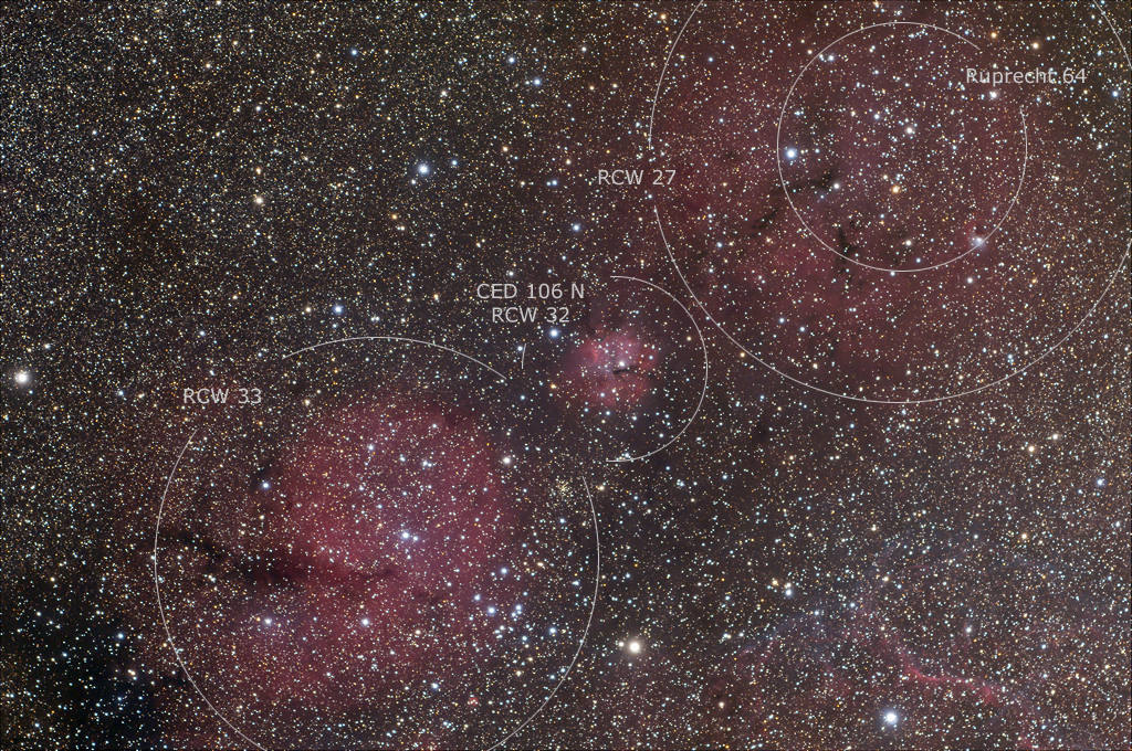 Vela Ced 106 N and RCW 27 + RCW 33 - H-II emission in the constellation Vela |