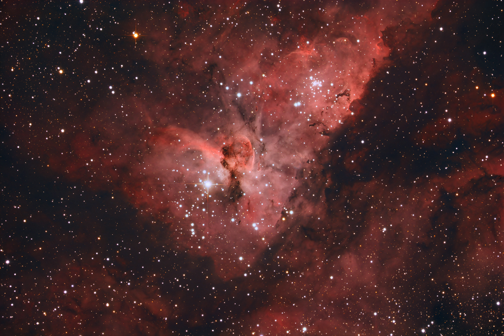 | Herschel's Keyhole Nebula - the center of the great Carina Nebula Image data 13.05.2022 - 12 x 300 s, QHY ALccd 12 (cooled) Telescope: PlaneWave CDK 12.5" Astrograph + 0.8x Reducer at f = 2030 mmm Location: Chamäleon Observatory, Onjala Lodge, Namibia Image acquisition and processing: DeepSkyStacker, PixInsight + Photoshop by Bernd Gooßmann |