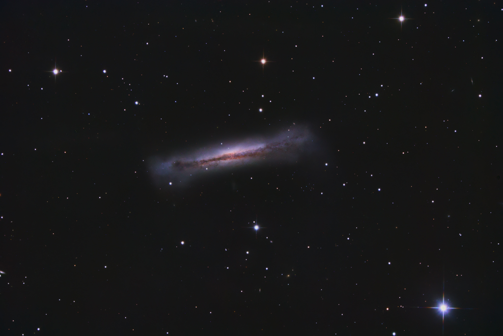 | NGC 3628 in the constellation Leo Image data Date: some nights in may 2022 - 9 x 600 s, QHY ALccd 12 (cooled) Telescope: CDK 12.5" PlaneWave Astrograph + 0.8x Reducer at f = 2030 mmm Location: Chamäleon Observatory, Onjala Lodge, Namibia Image acquisition and processing: DeepSkyStacker, PixInsight + Photoshop by Bernd Gooßmann |