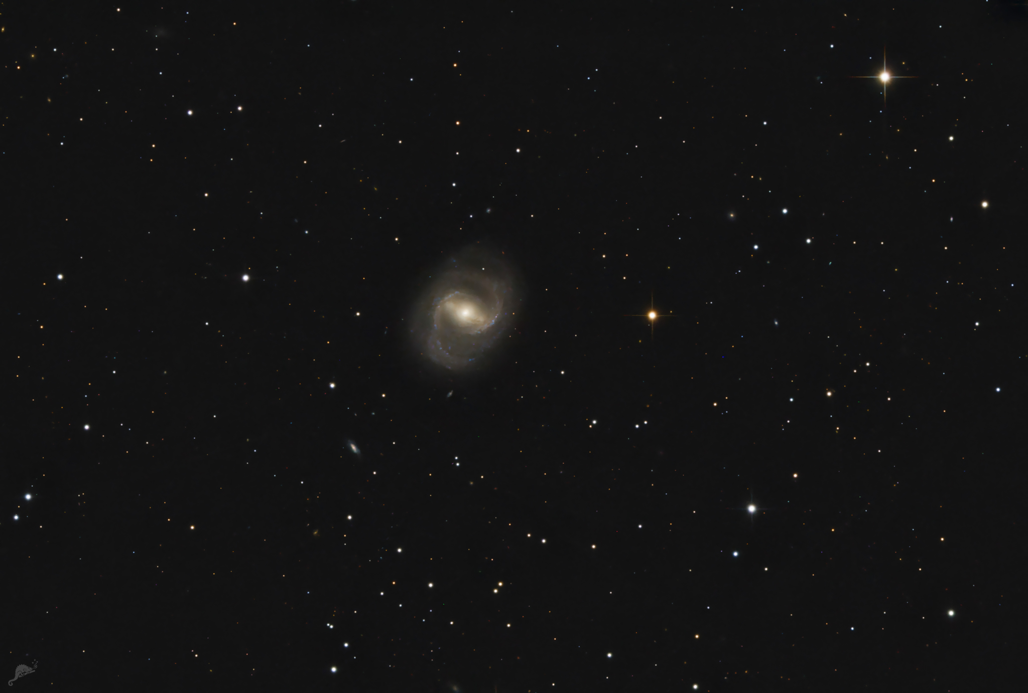 | Messier 91 - a barred spiral galaxy in the constellation Coma Berenices Image data Date: some nights in May and June 2025 - 16 x 600 s, QHY ALccd 12 (cooled) Telescope: CDK 12.5" PlaneWave Astrograph + 0.8x Reducer at f = 2030 mmm Location: Chamäleon Observatory, Onjala Lodge, Namibia Image processing: PixInsight + Photoshop |