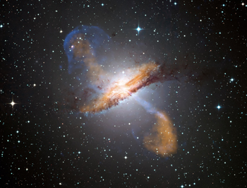 NGC 5128, die auch die Keulen und Jets zeigt, die von dem zentralen Schwarzen