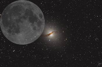 Bildes klicken. Das Bild zeigt einen Größenvergleich von NGC 5128