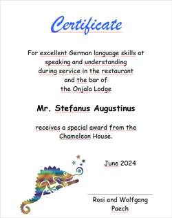 für Stefanus für seine guten Deutschkentnisse und ein zweites