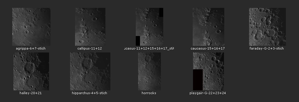 Mondbilder, aufgenommen in den Monaten Juli und August 2022 mit dem Celestron 14 in der 4m Onjala Kuppel. Die Bilder umfassen Detailbilder einzelner Mondregionen und einige Mosaike. Es sind die "best of" Bilder aus dem Jahr 2022