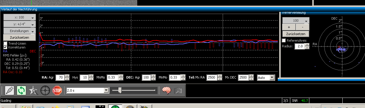 Das Bild oben rechts zeigt guiding und seeing während der 600
