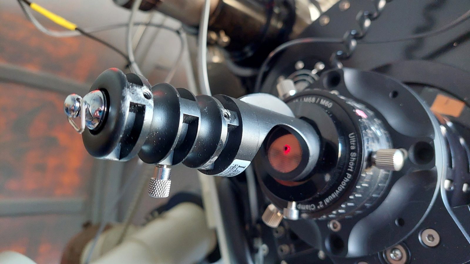 angesetzt. Das Teleskop wieder auf die Montierung gesetzt und den Baader Laser