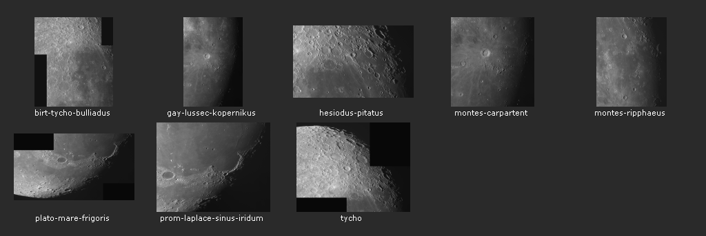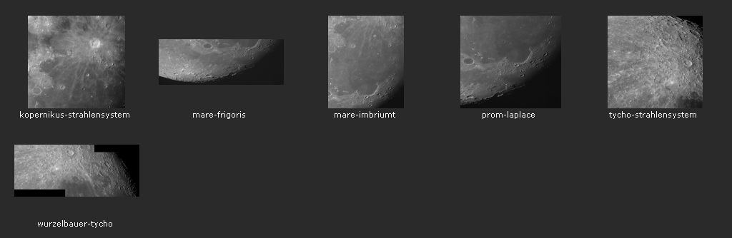 Die Filenamen benennen die ungefähren Mondformationen in der Bildmitte.