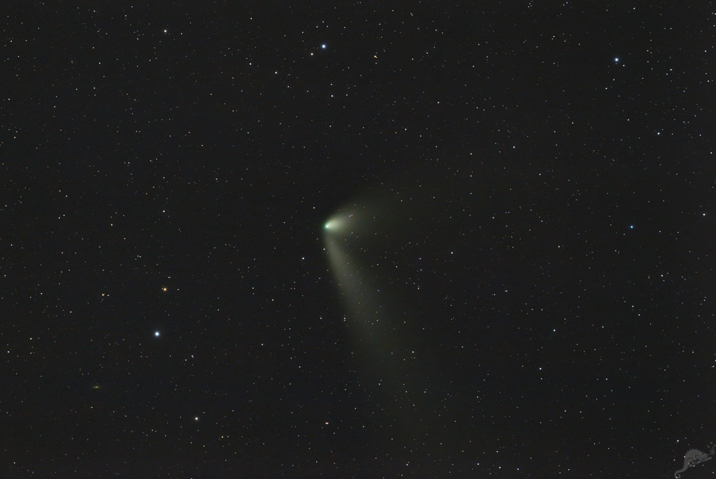 | Objektbeschreibung: Der Komet wurde am 16.08.2014 vom robotischen Pan-STARRS 1 telescope auf Hawaii entdeckt. Er steigerte bis Juli 2015 seine Helligkeit auf rund 4.5 mag und wurde danach sehr schnell schwächer. Zur Aufnahmezeit im August betrug seine Helligkeit nur noch 8.5 mag. Er stand in Namibia kurz nach der Abenddämmerung etwa 20 Grad über dem Horizont. Die Umlaufzeit des Kometen beträgt rund 40 000 Jahre. |