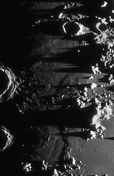 Bild mit sehr hohem Kontrast bearbeitet, Rillensystem im Krater