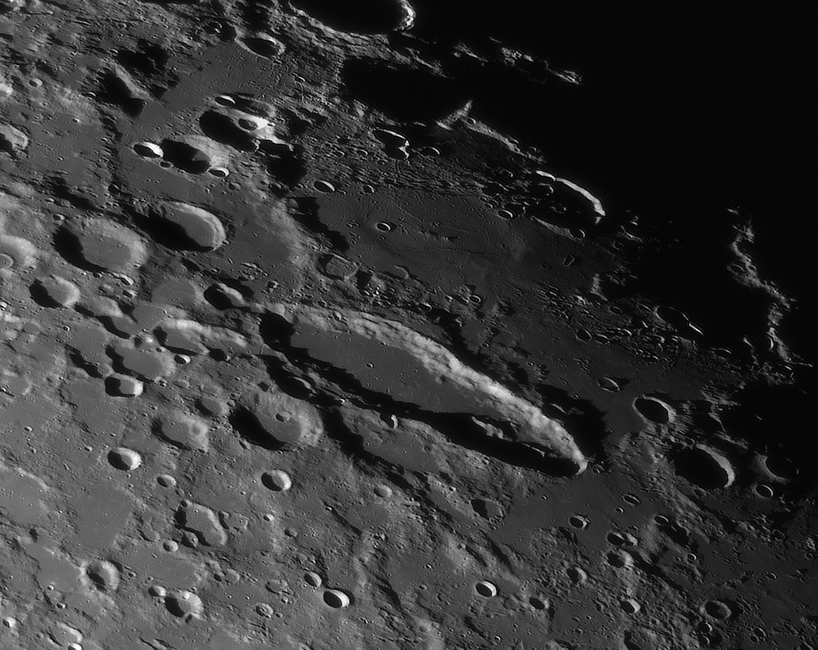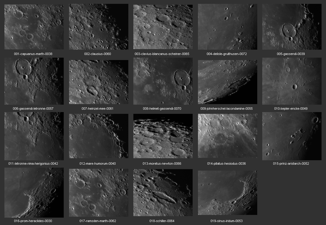 | Interesting image details Image 001 - shows the concentric double crater Marth in the middle of the image. Image 014 - shows the concentric double crater Hesiodus A and the large Floor Fractured crater Pitatus Detailed descriptions of other exceptional or unique structures at this moon age you can find in this pdf-file |