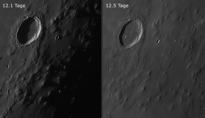 field Marius Hill and the crater Marius at a Moon age of 12.1 and 12.5 days