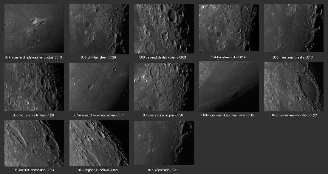 Image 001 - shows the mysterious Aristarch Plateau Image 010 - shows the large crater