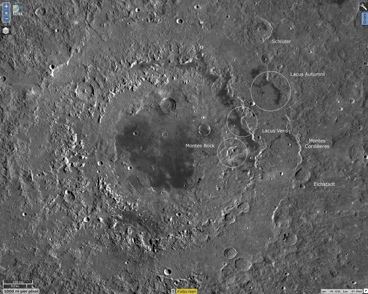 1.000 kilometer. The eastern wall of the basin is called Montes Cordilleres