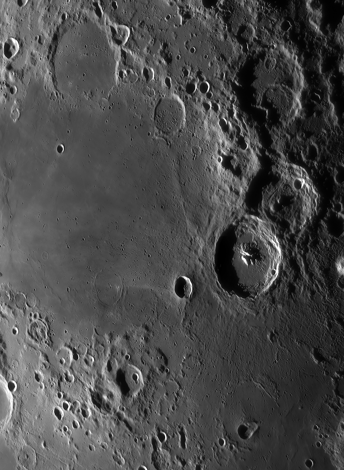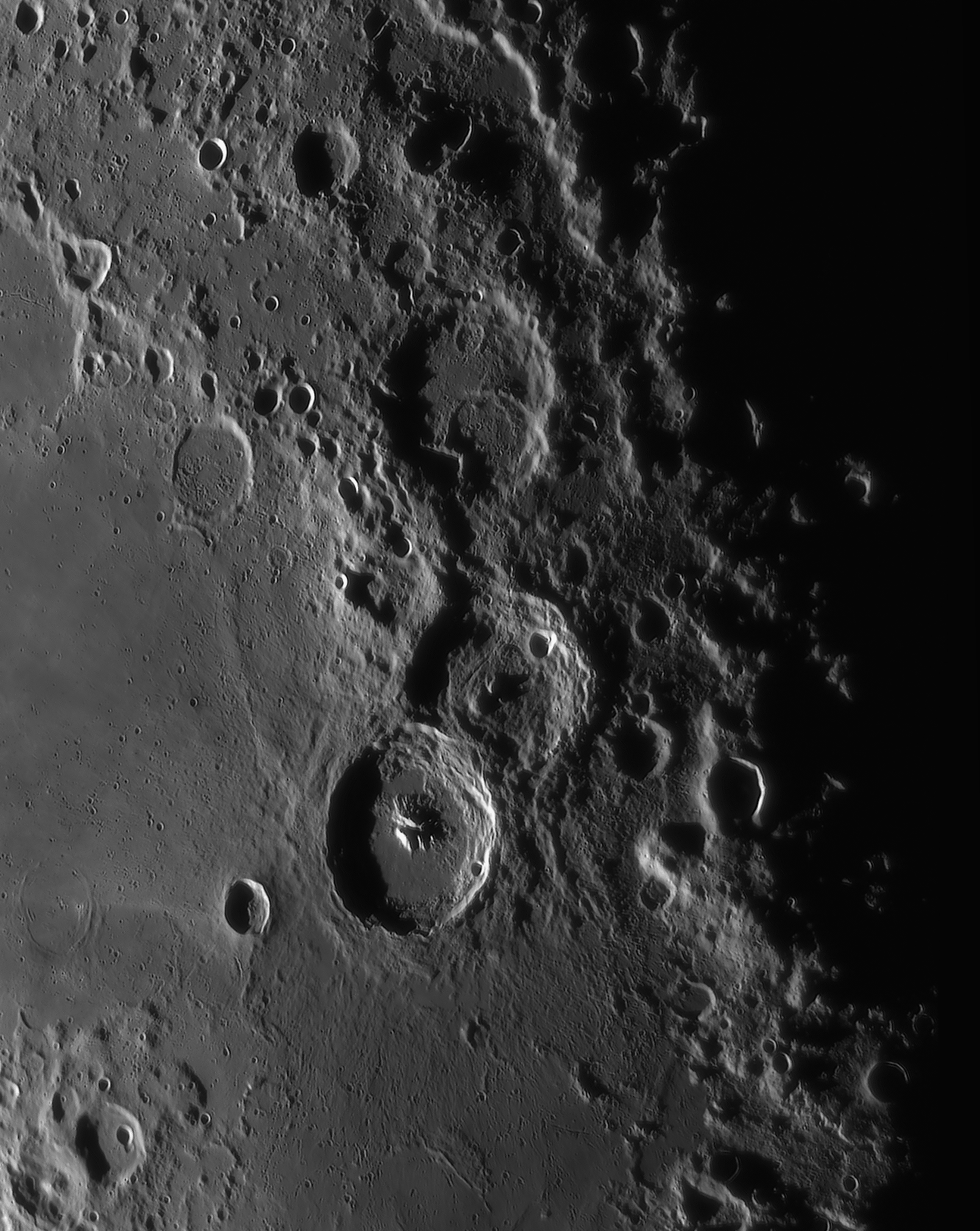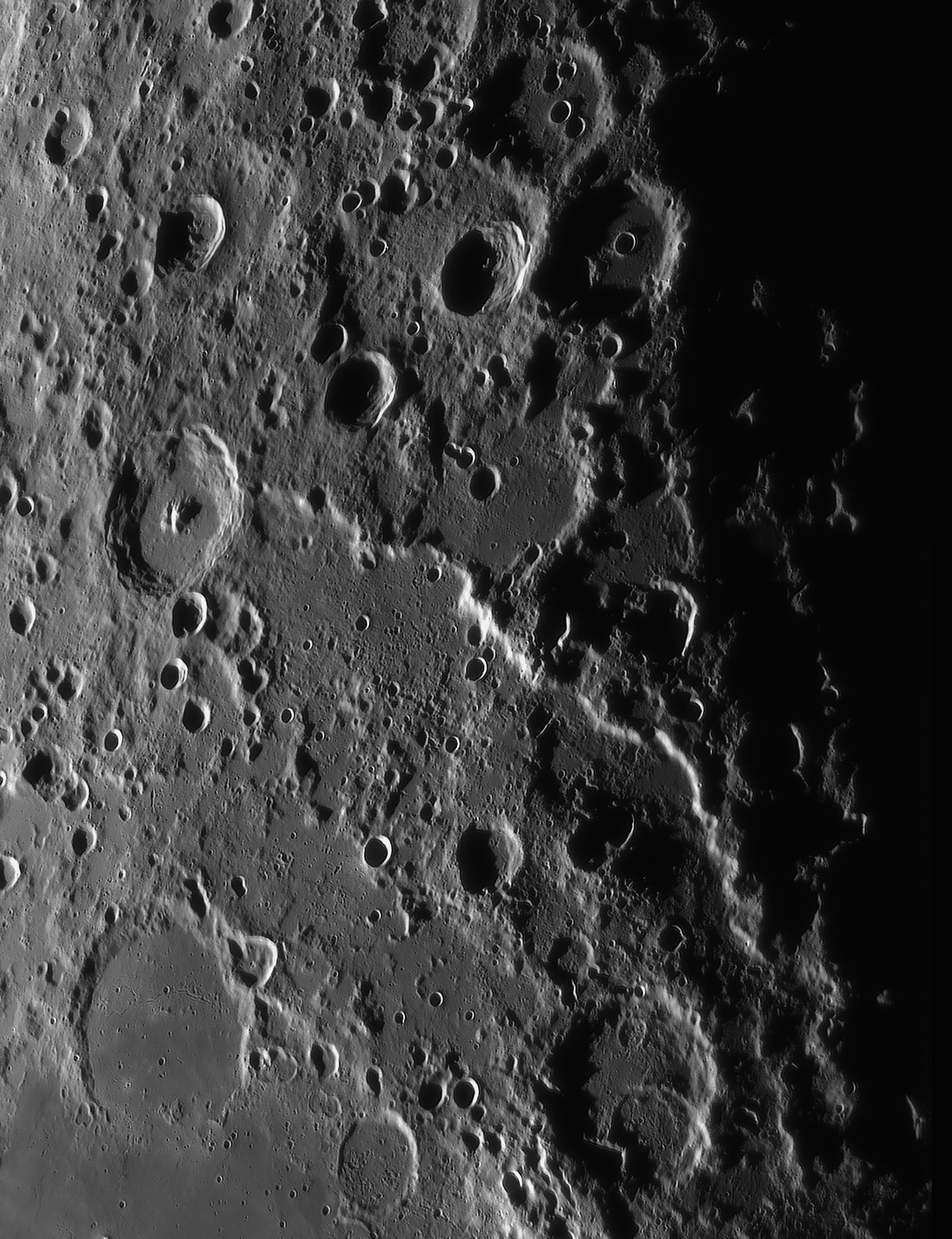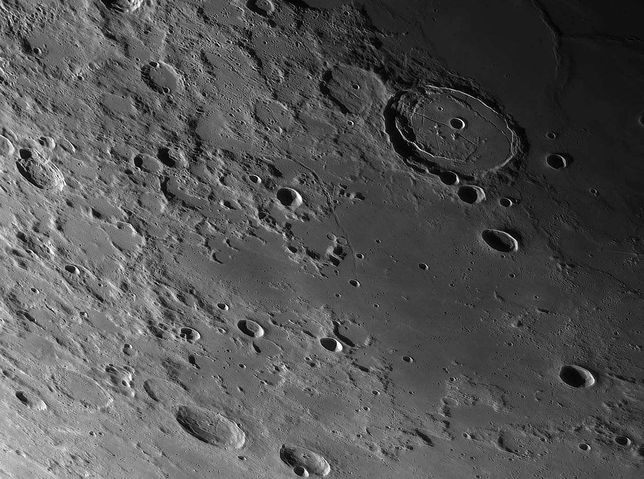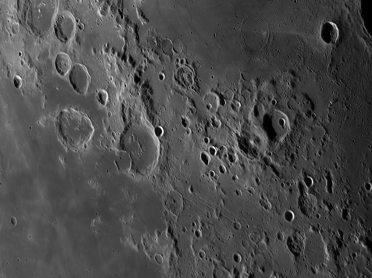 Catharina at sunrise, secondary craters in the Tycho-ray north of
