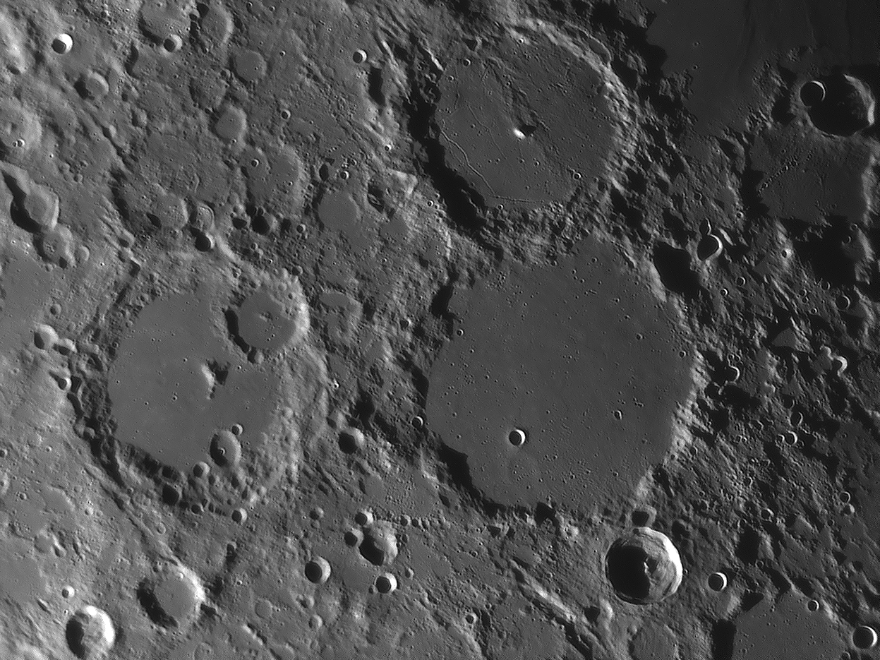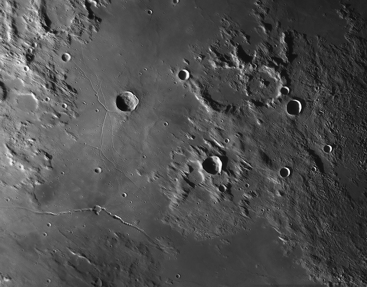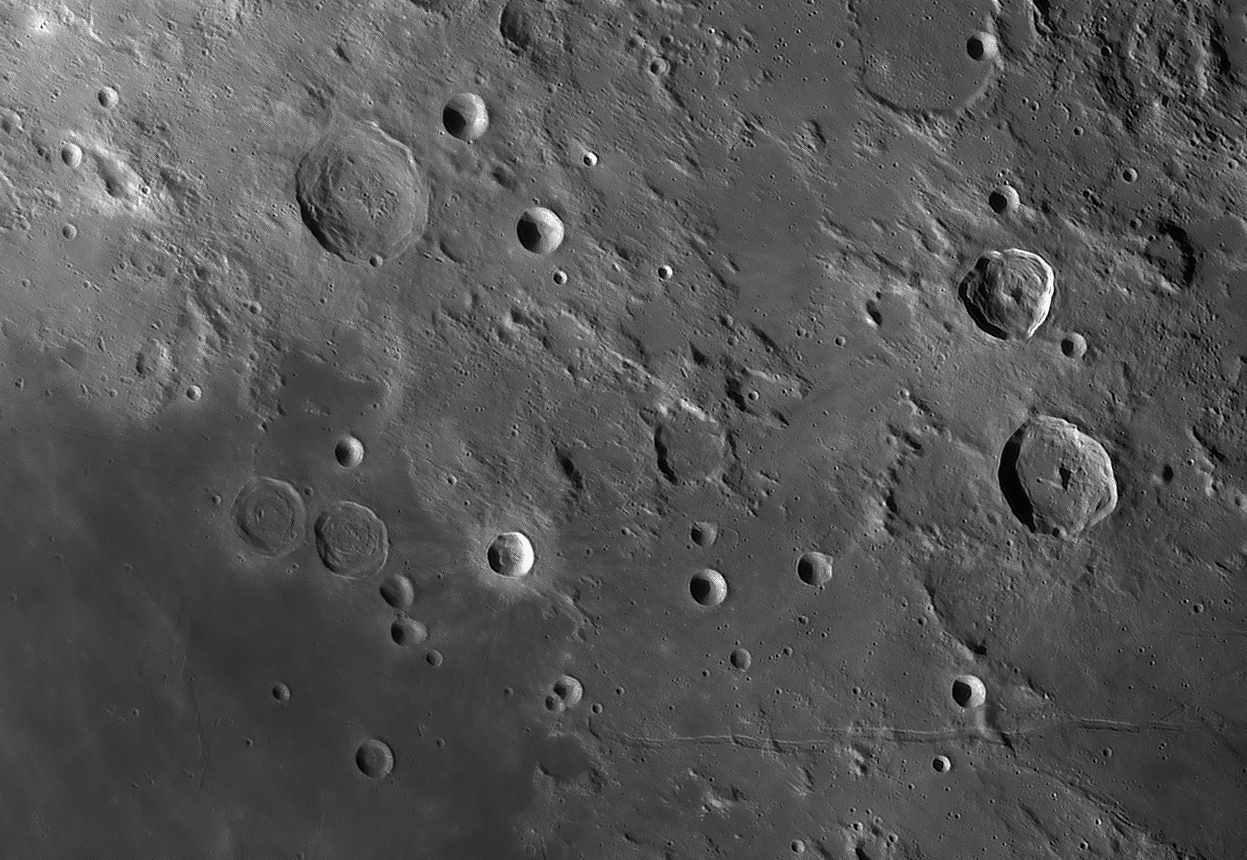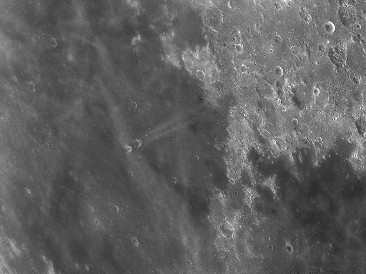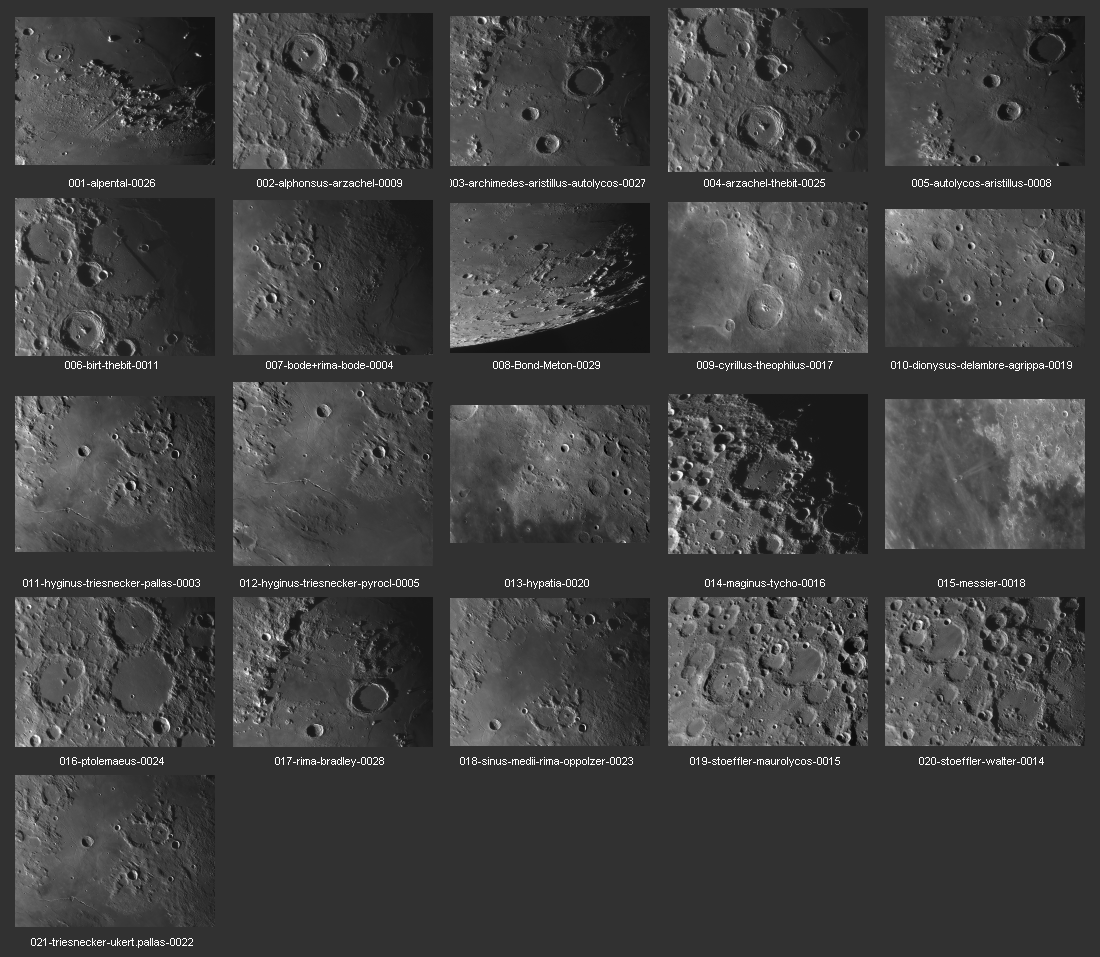 | Interesting image details Image 012 - shows Hyginus, Rimae Triesnecker and the pyroclastic ash field north of Hyginus - Mare Vaporum Image 015 - shows the unusual crater forms of Messier and Messier A as well as the butterfly-like ray system Detailed descriptions of other exceptional or unique structures at this moon age you can find in this pdf-file |