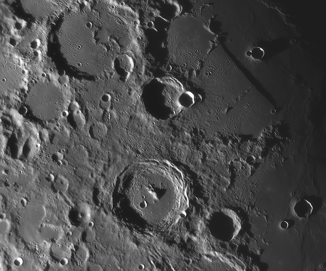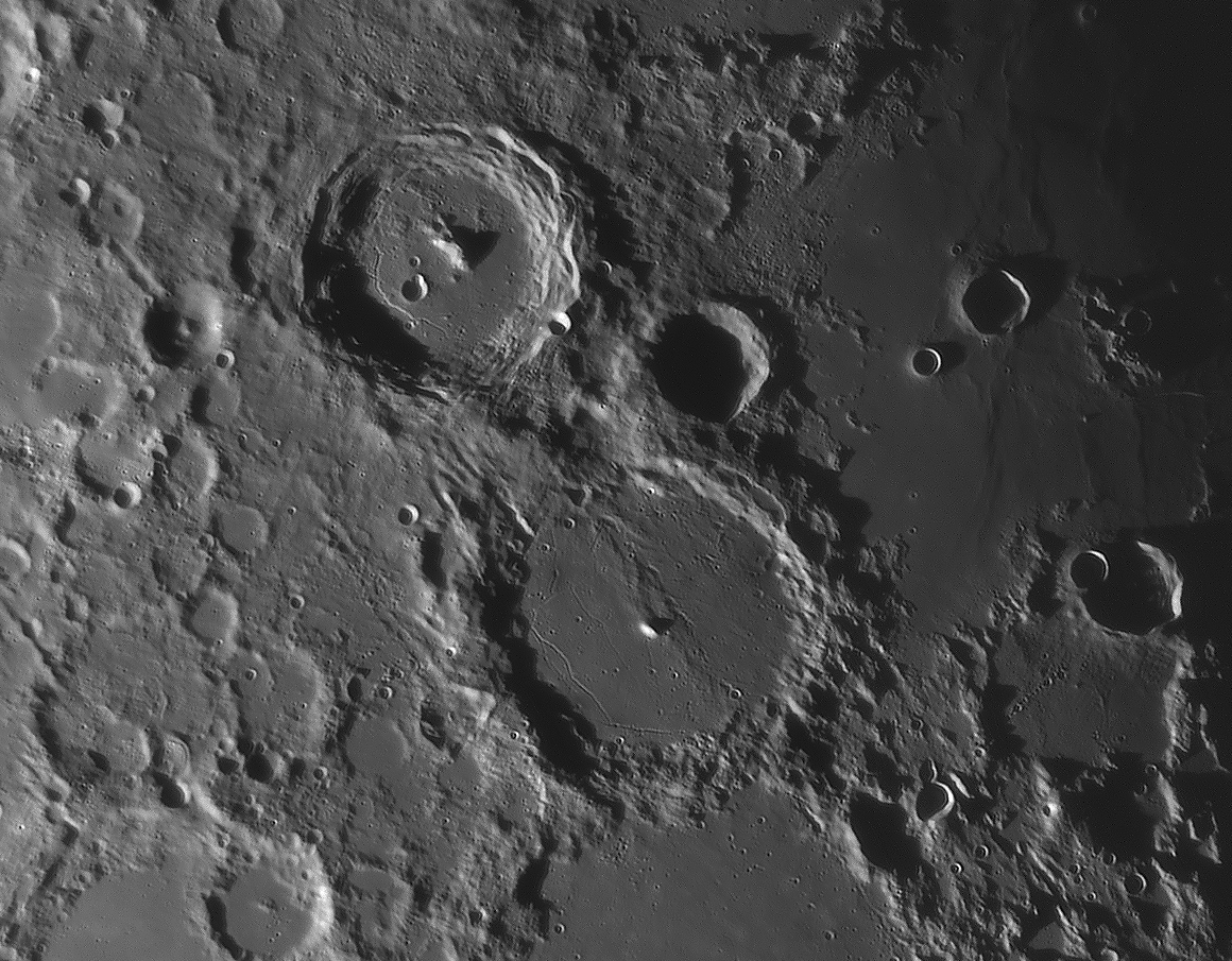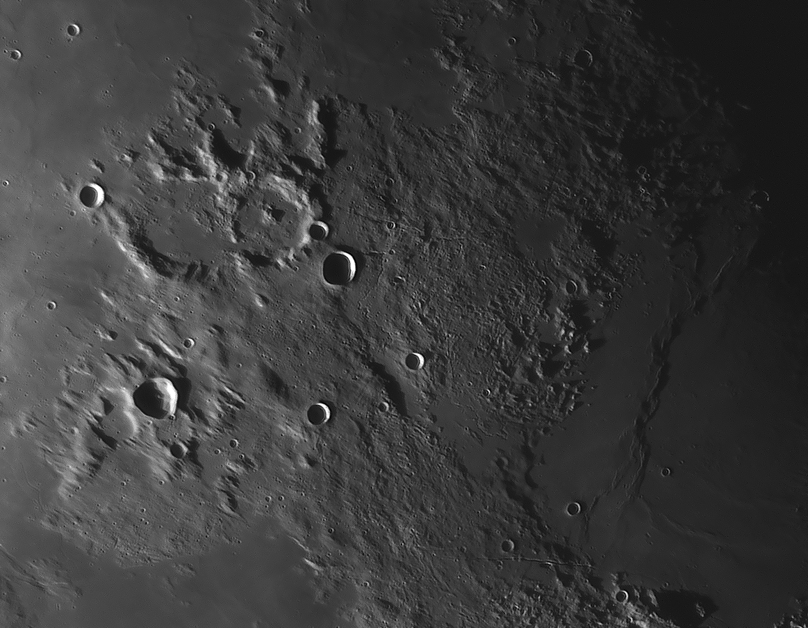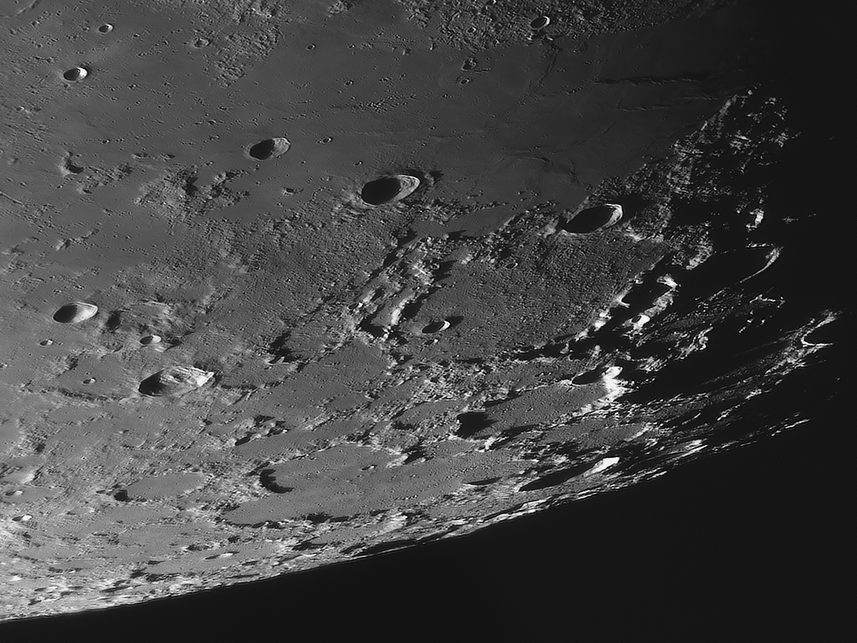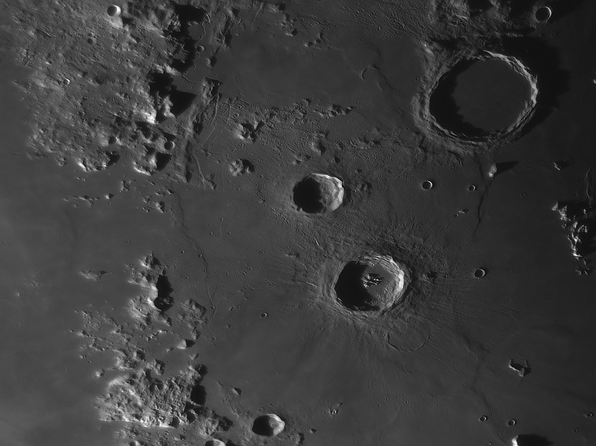 | Interesting image details Image 012 - shows Hyginus, Rimae Triesnecker and the pyroclastic ash field north of Hyginus - Mare Vaporum Image 015 - shows the unusual crater forms of Messier and Messier A as well as the butterfly-like ray system Detailed descriptions of other exceptional or unique structures at this moon age you can find in this pdf-file |