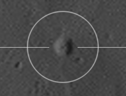 1.300 Metern hat. Kleinere Krater sind deutlich sichtbar. Der im Bild markierte