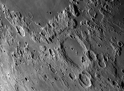the crater floor has a narrow channel system, the Rimae Cleomedes. Along the