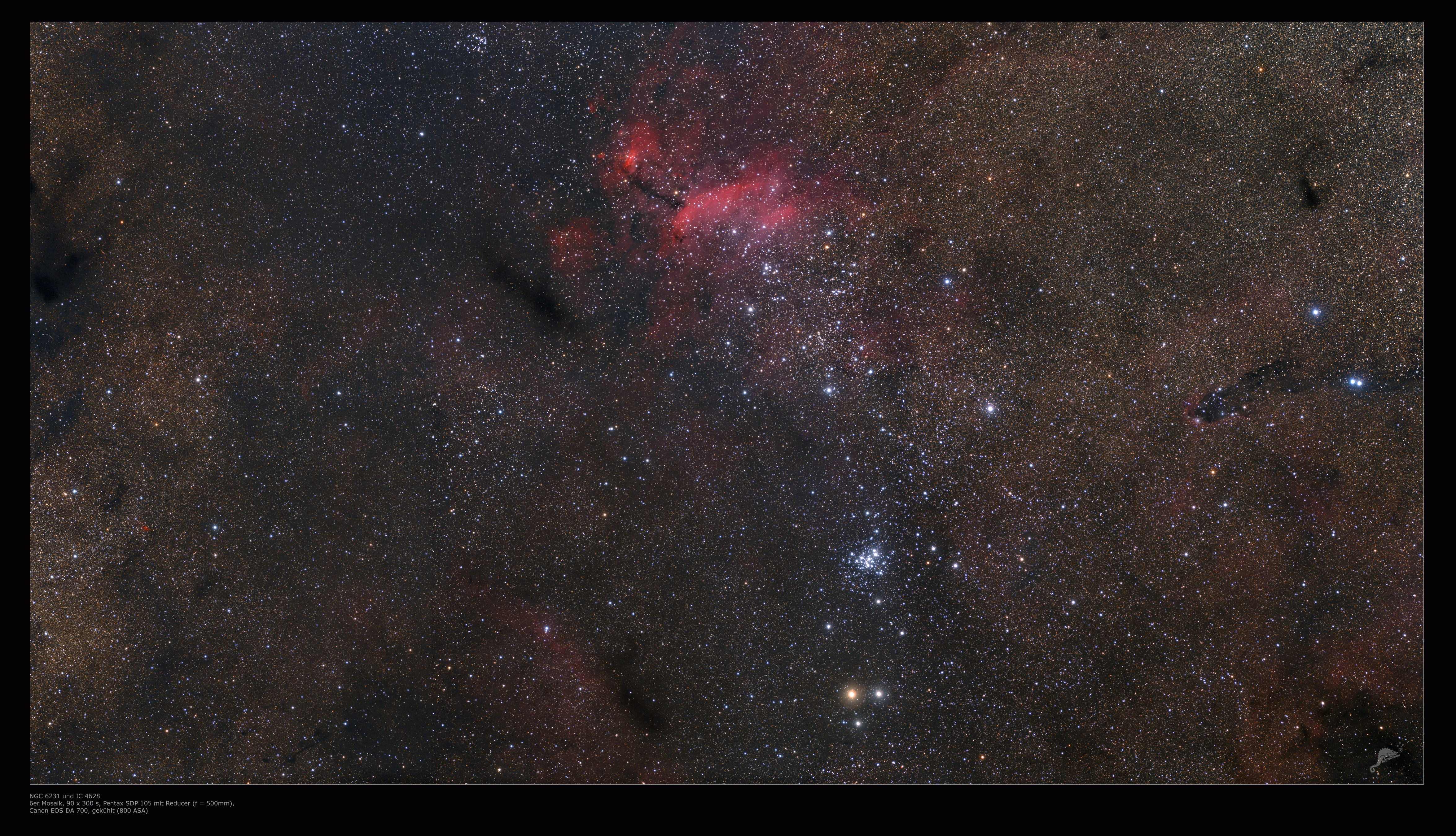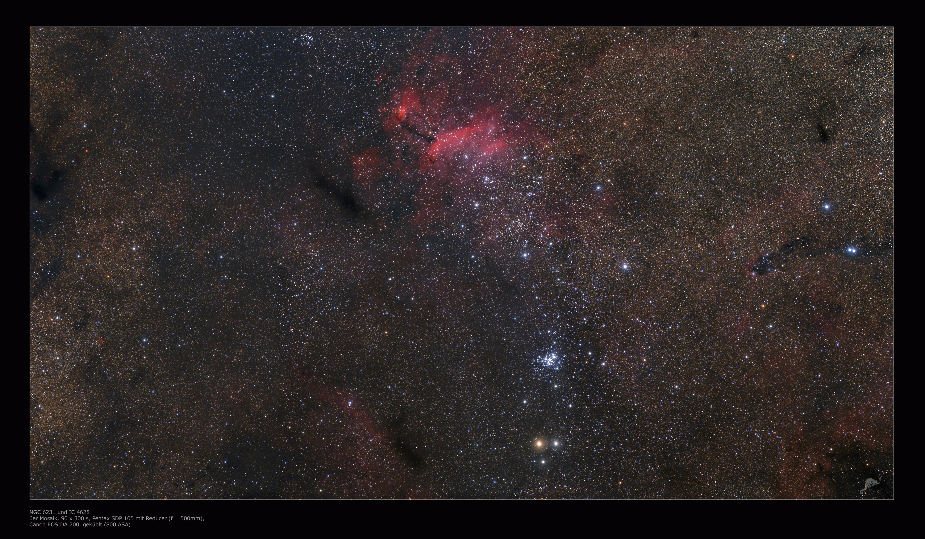 | NGC 6231 und IC 4628 in einem Widefield 6er Mosaik - die SCO