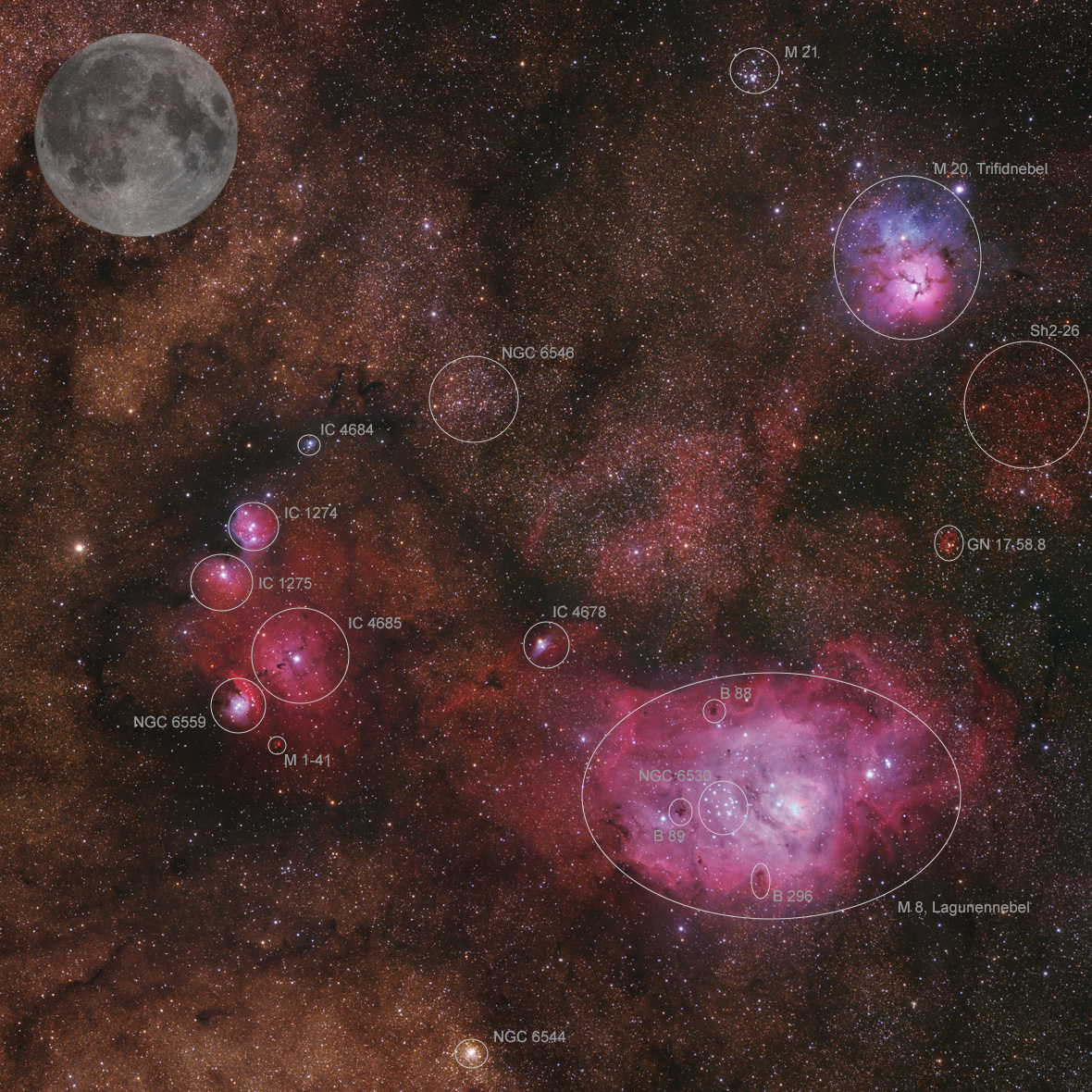 Die Region um M 8, M 20, M 21 und IC 1274/75 - ein 4er