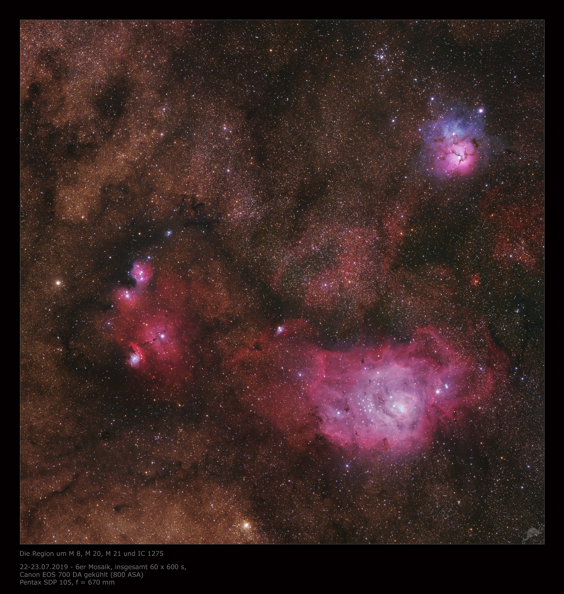 The region around M 8, M 20, M 21 and IC 1274/75 - a mosaic of