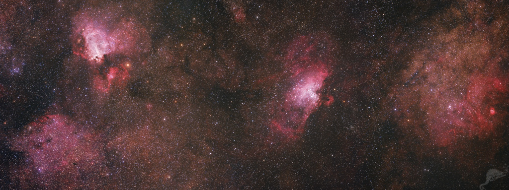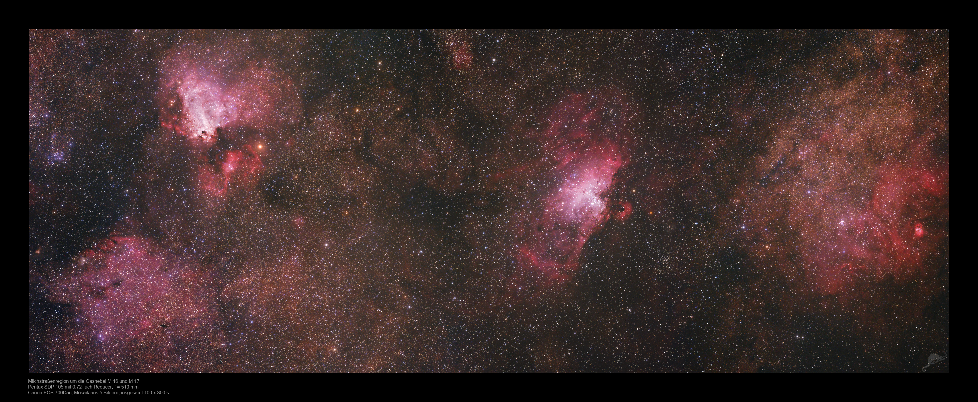 16 bis zu NGC 6604 A mosaic of 5 segments from Messier 17 via Messier 16 up to NGC 6604 |