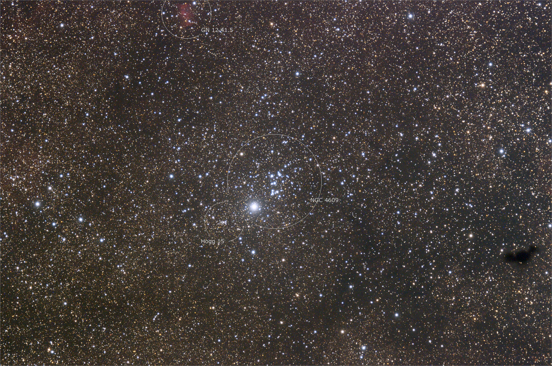 des Südens NGC 4609 and Hogg 15 - open star clusters in the constellation