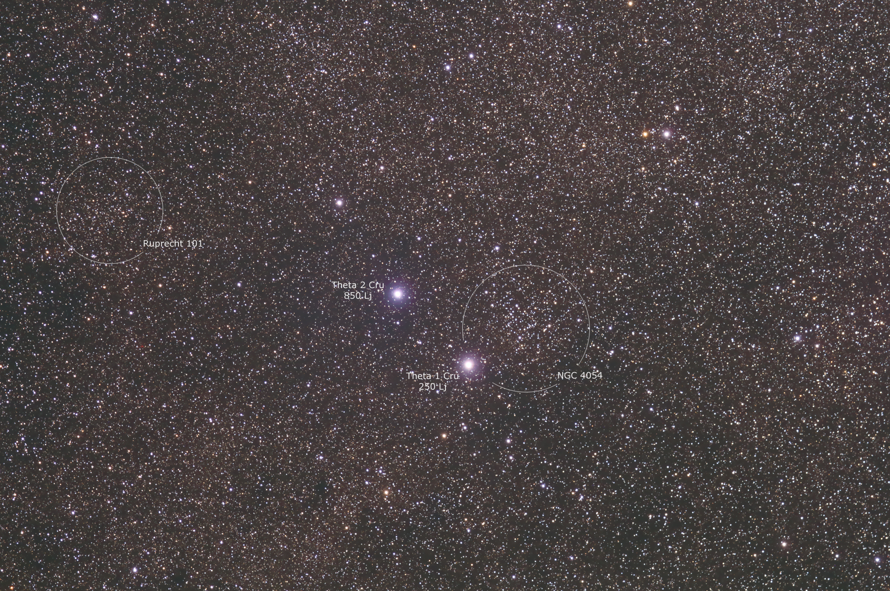 Kreuz des Südens NGC 4052 and Ruprecht 101 - open star clusters in the constellation Southern Cross |