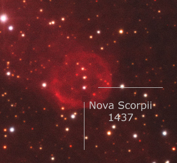 weltweit einzige Amateuraufnahme der Gashülle der Nova Scorpii 1437.