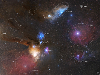 | Die Nebelregion um Antares in Sternbild