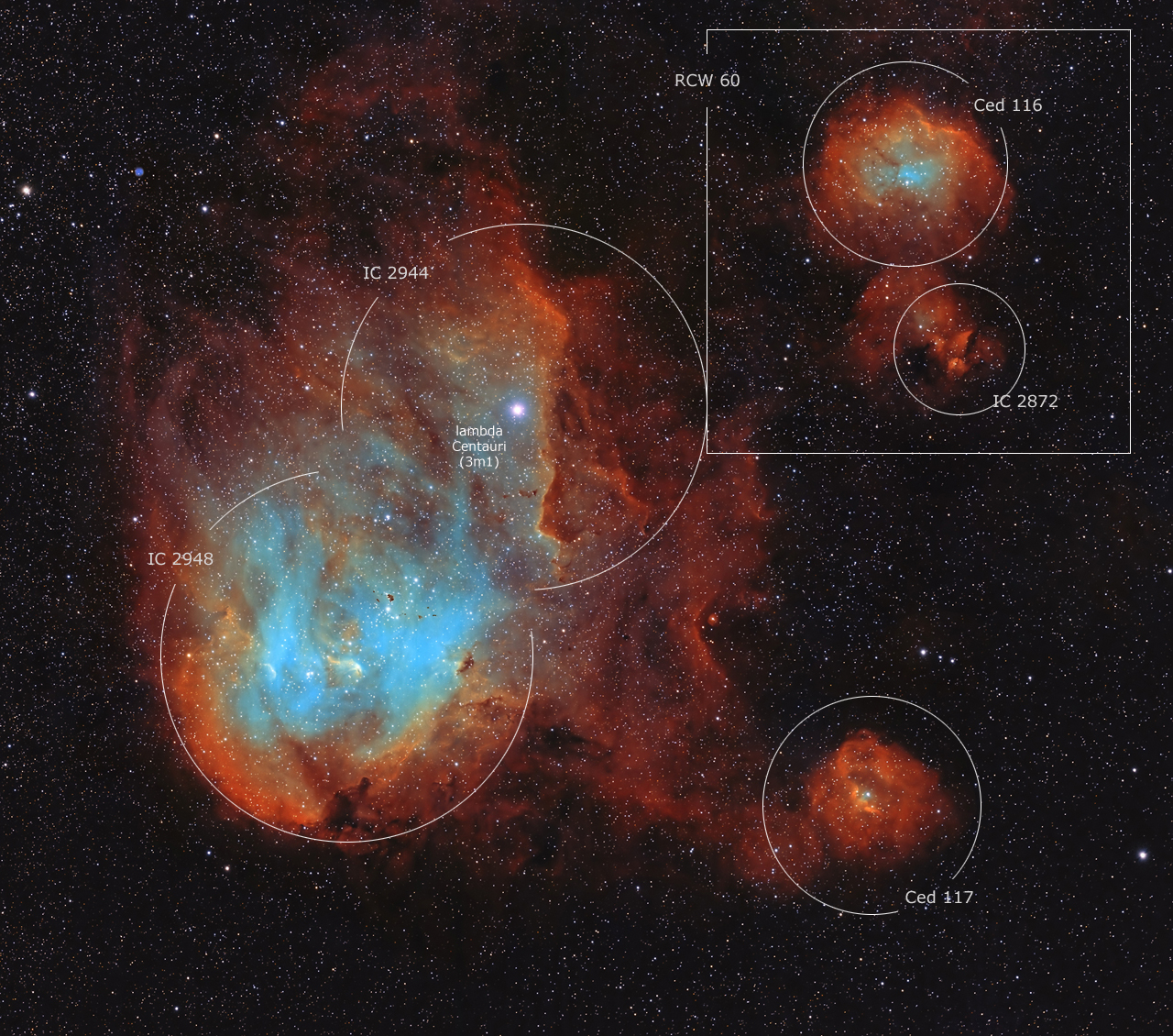 Schmalband 2er Mosaik IC 2944 - Emission Nebula in the Constellation Centauris - a Narrow Band Mosaic of 2 |
