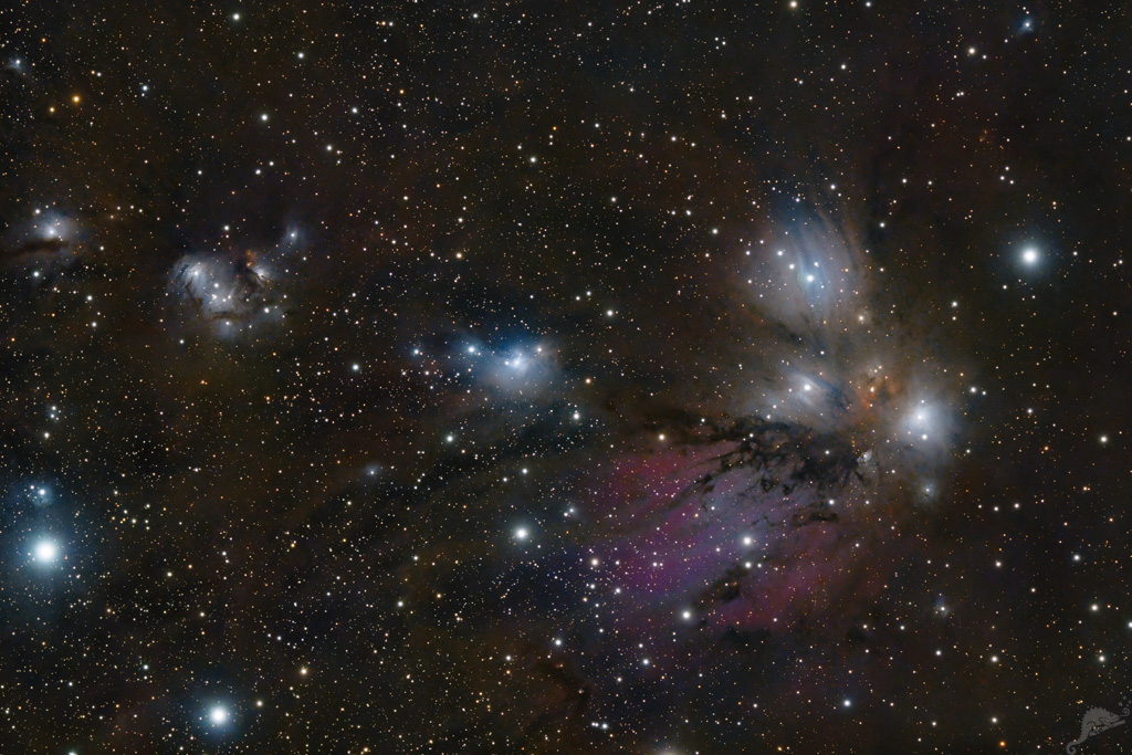 | NGC 2170 - H-II and Reflection Nebula in the constellation Unicorn (Monoceros) Image data 15.04.2022 - 9 x 600 s, ZWO ASI 071 Pro - Color (cooled) Telescope: Pentax SDP 105 mm at f = 670 mm Location: Chamäleon Observatory, Onjala Lodge, Namibia Image acquisition and processing: DeepSkyStacker, PixInsight + Photoshop |