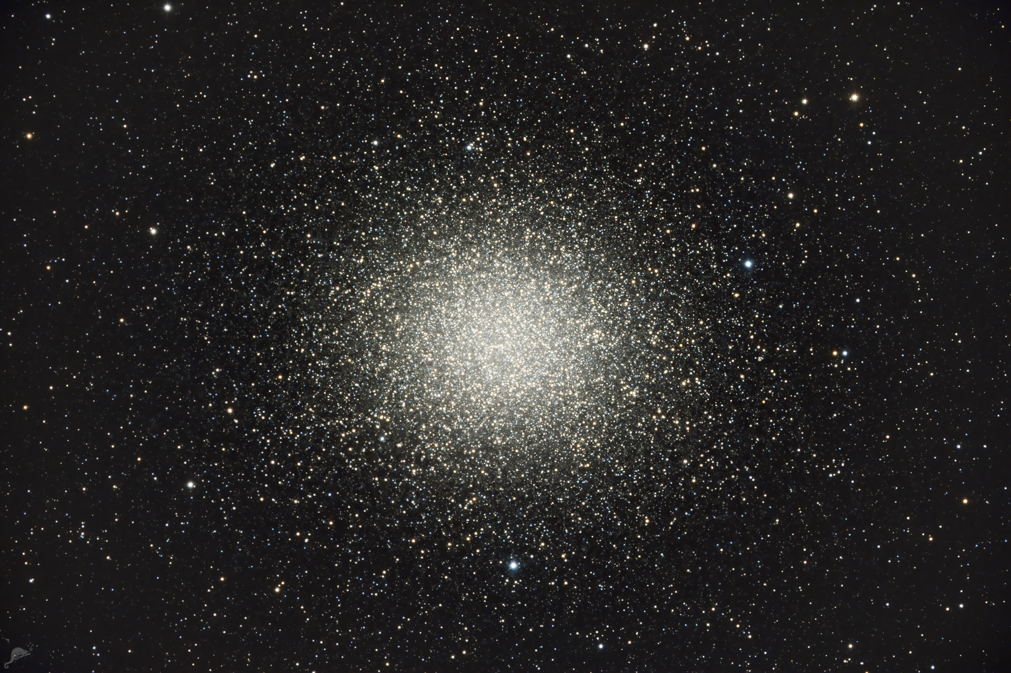 | The core region of Omega Centauri (NGC 5139) Image data 04.06.2022 - 30 x 60 s, QHY ALccd 12 (cooled) Telescope: PlaneWave CDK 12.5" Astrograph + 0.8x Reducer at f = 2030 mmm Location: Chamäleon Observatory, Onjala Lodge, Namibia Image acquisition and processing: DeepSkyStacker, PixInsight + Photoshop |