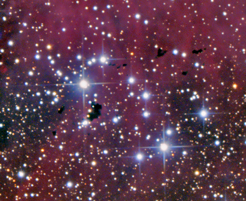 | Objektbeschreibung: Sternentstehung und Thackeray Globulen in IC 2948 - Unser Bild zeigt den zentralen Teil der faszinierenden Sternentstehungsregion IC 2948 im Sternbild Zentaurus, bestehend aus H-II Emission, Dunkelwolken und blauen Reflexionsnebeln. Merkwürdigerweise ist der helle, sehr junge offene Sternhaufen nicht mit einer eigenen Nummer im NGC Katalog erfasst. Die Region liegt etwa 6.500 Lichtjahre vom Sonnensystem entfernt. Das besondere an dieser Region sind eine Gruppe von sehr dichten Staubwolken um den Sternhaufen herum, die als Thackeray-Globulen bekannt sind und sich von dem blassrosa leuchtenden Gas des Nebels abheben. Sie stehen unter einem heftigem Bombardement durch die starke ultraviolette Strahlung der ehißen jungen Sterne des Sternhaufens. Sie zerstört die Thackeray-Globulen, bevor sie kollabieren und neue Sterne bilden können. Die komplette Region wurde erst spät - im Jahre 1904 - von Royal Harwood Frost entdeckt. Mehr Informationen der ESO hier. Object description Star formation and Thackeray globules in IC 2948 - Our image shows the central part of the fascinating star forming region IC 2948 in the constellation Centaurus, consisting of H-II emission, dark clouds and blue reflection nebulae. Curiously, the bright, very young open star cluster is not recorded with its own number in the NGC catalog. The region lies about 6,500 light-years from the solar system. |
