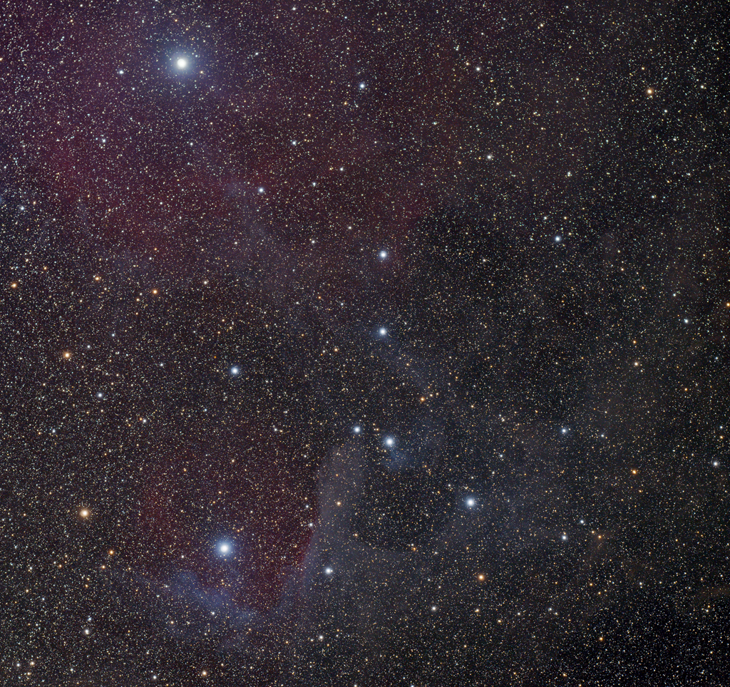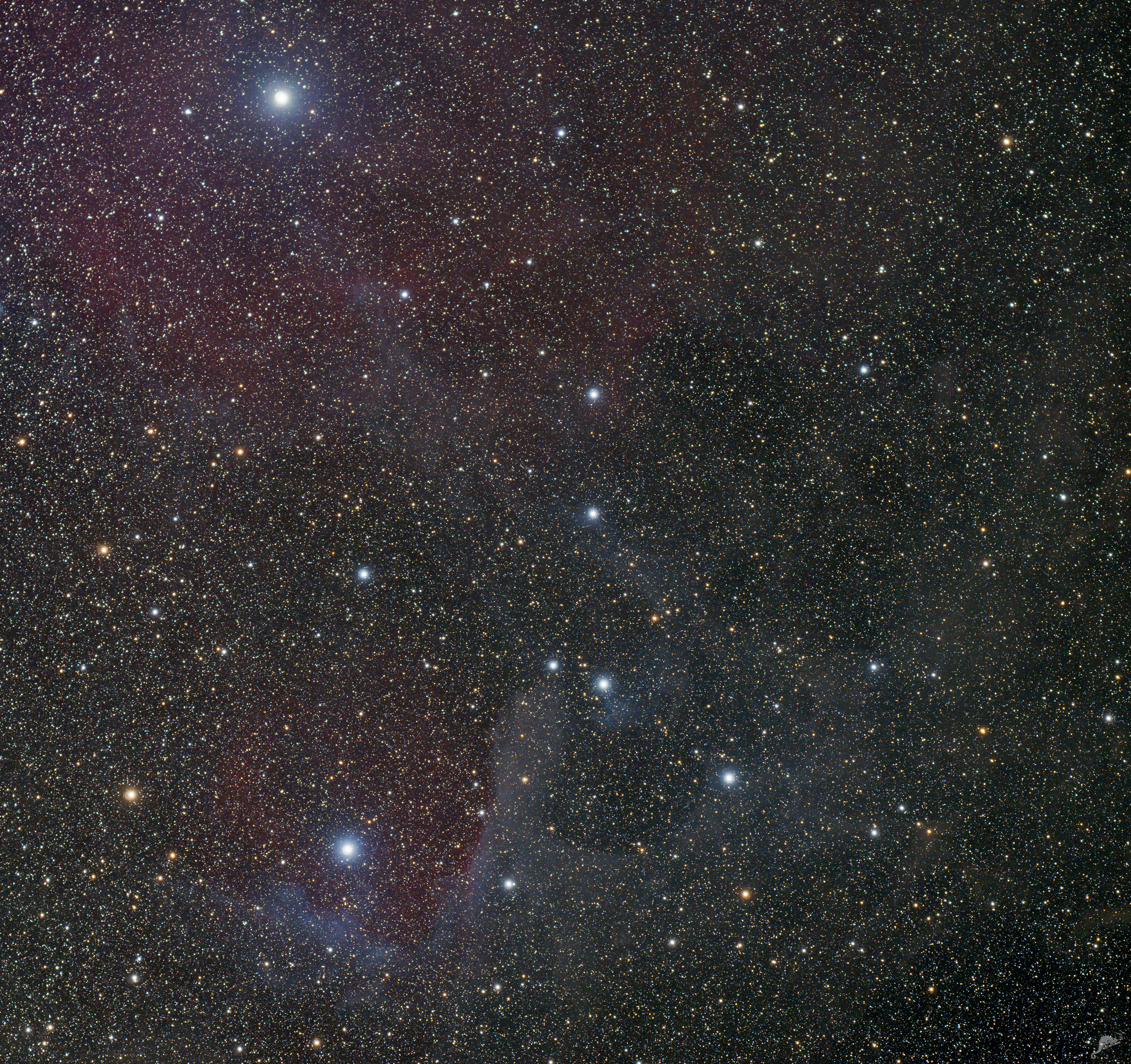 Reflexionsnebel um die Sterne phi + delta im Skorpion Sh2-1, GN 15.50.6 and LBN 1099 - H-II emission and reflection nebulae around the stars phi + delta in Scorpio |