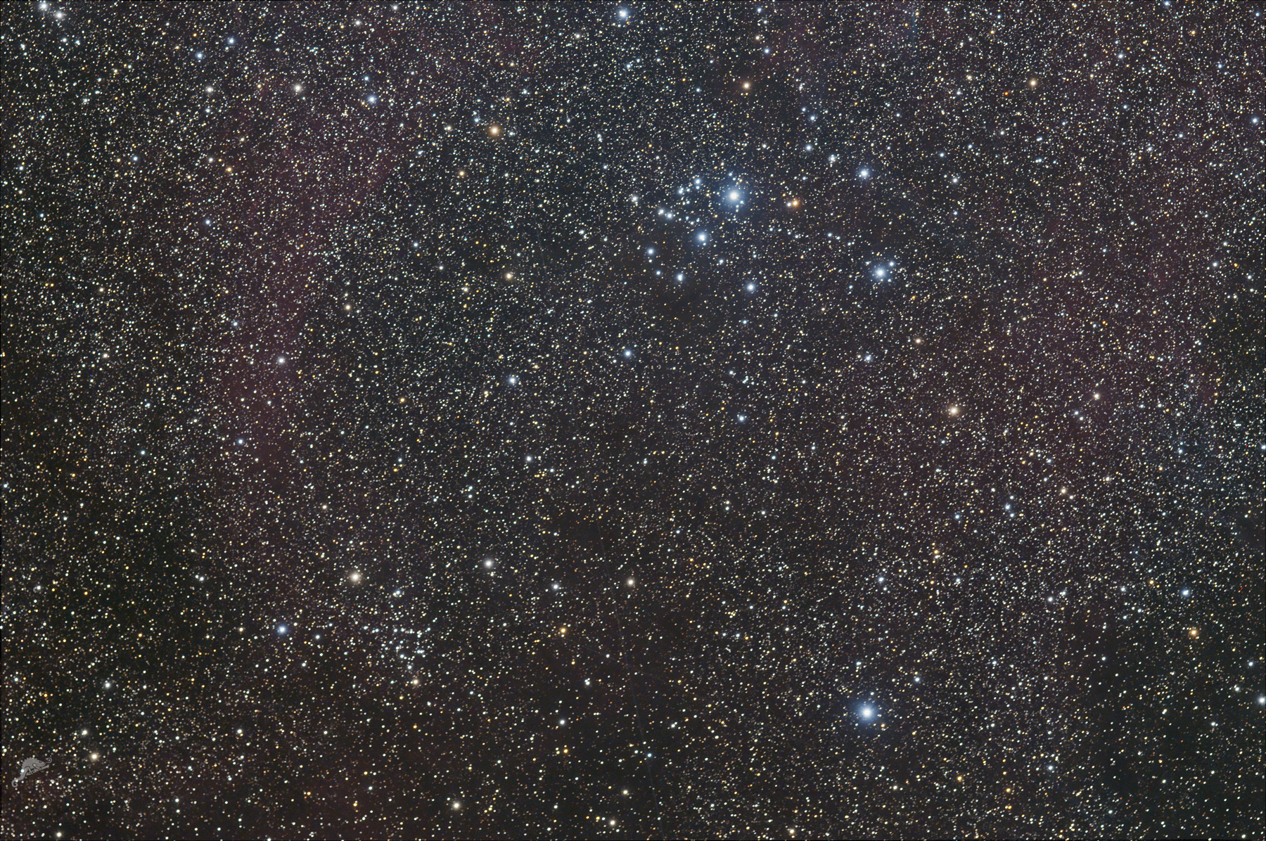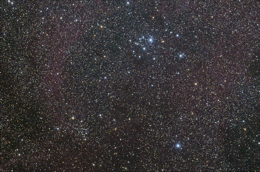 | NGC 2670, Van den Berg Hagen 47 and IC 2395 Image data 08.06.2024 - total 4 x 600 s, ZWO ASI 071 Pro (cooled) Telescope: Pentax SDP 105 at f = 670 mmm Location: Chamäleon Observatory, Onjala Lodge, Namibia Image processing: DeepSkyStacker, PixInsight + Photoshop |
