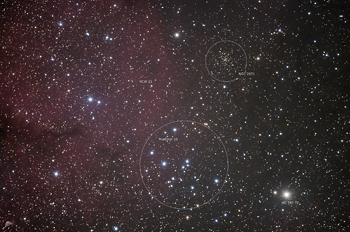 | NGC 2671, Trumpler 10 und RCW 33 im Sternbild