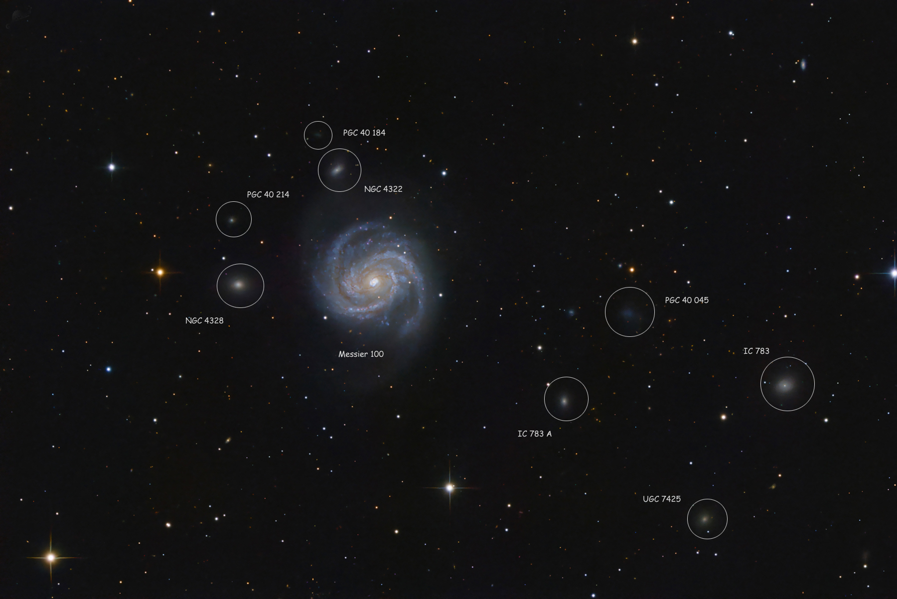 | Messier 100 und der kleine Galaxienhaufen Holm 387 im