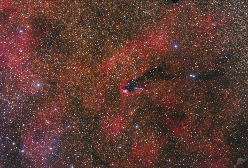 Reflexionsnebel in der Globule zu erkennen. Die Entfernung beträgt rund