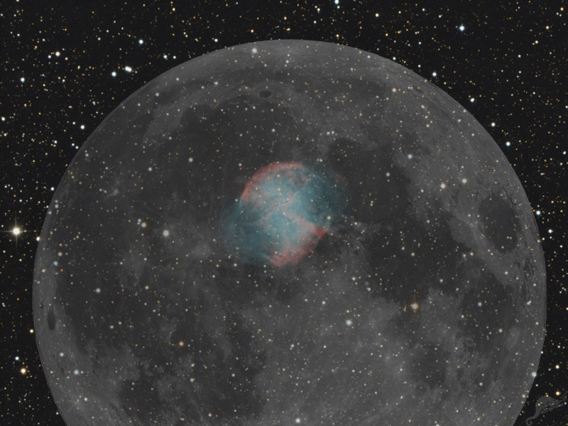 links zeigt einen Größenvergleich zum Vollmond.