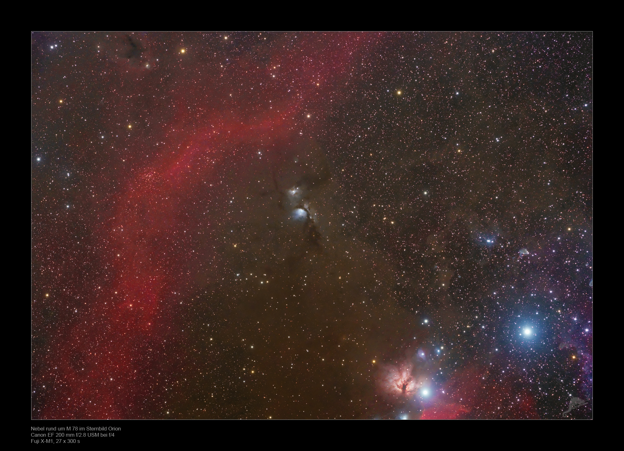 in Höhe von M78 (links im Bild) liegt der offene Sternhaufen