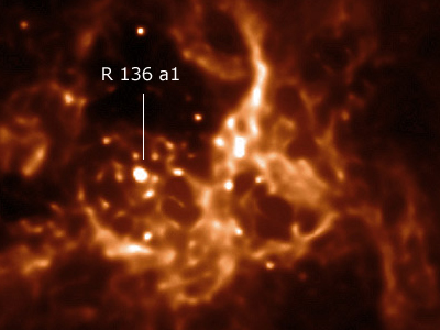 Stern mit der Bezeichnung R 136 a1 ist Teil eines ganzen Clusters von jungen,